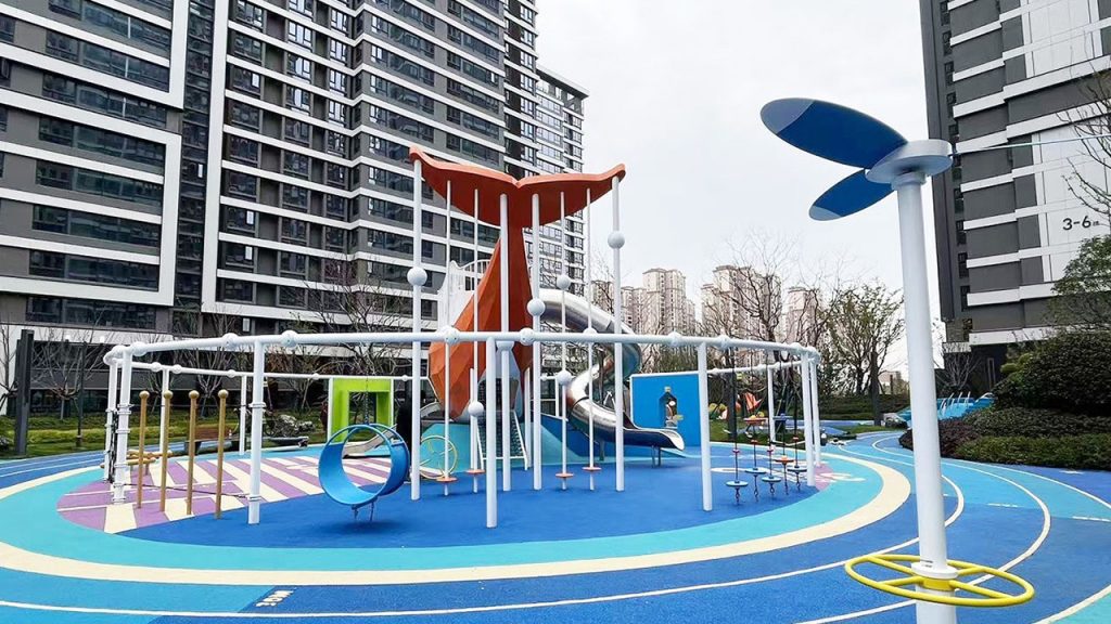 以蓝鲸 + 海洋为核心主题,将巨型蓝鲸仿生装置与社区自然环境深度融合,打造一座集滑行、攀爬、弹跳、互动于一体的全龄段亲子游乐空间。这里是孩子触摸海洋的窗口,是邻里共享欢乐的纽带,让每一次玩耍都成为一场治愈的海洋奇遇。
